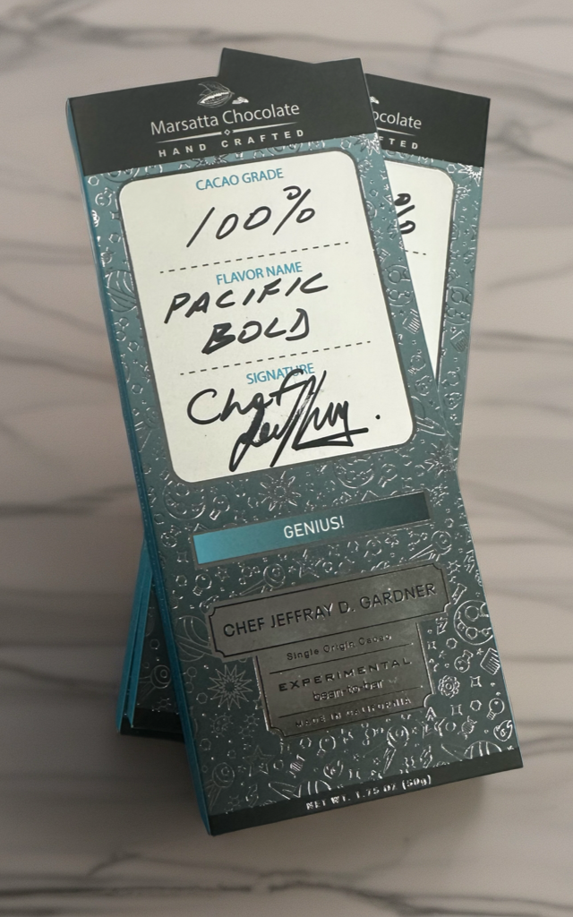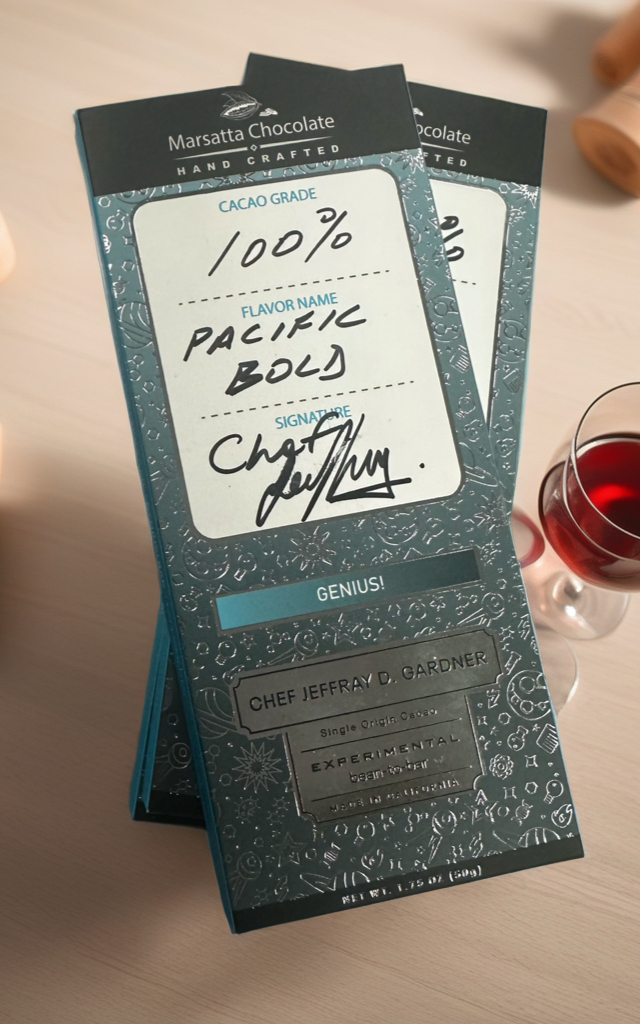 Each drop includes three experimental, small-batch Marsatta “Genius” bars — limited creations developed in our chocolate lab and never repeated the same way twice.